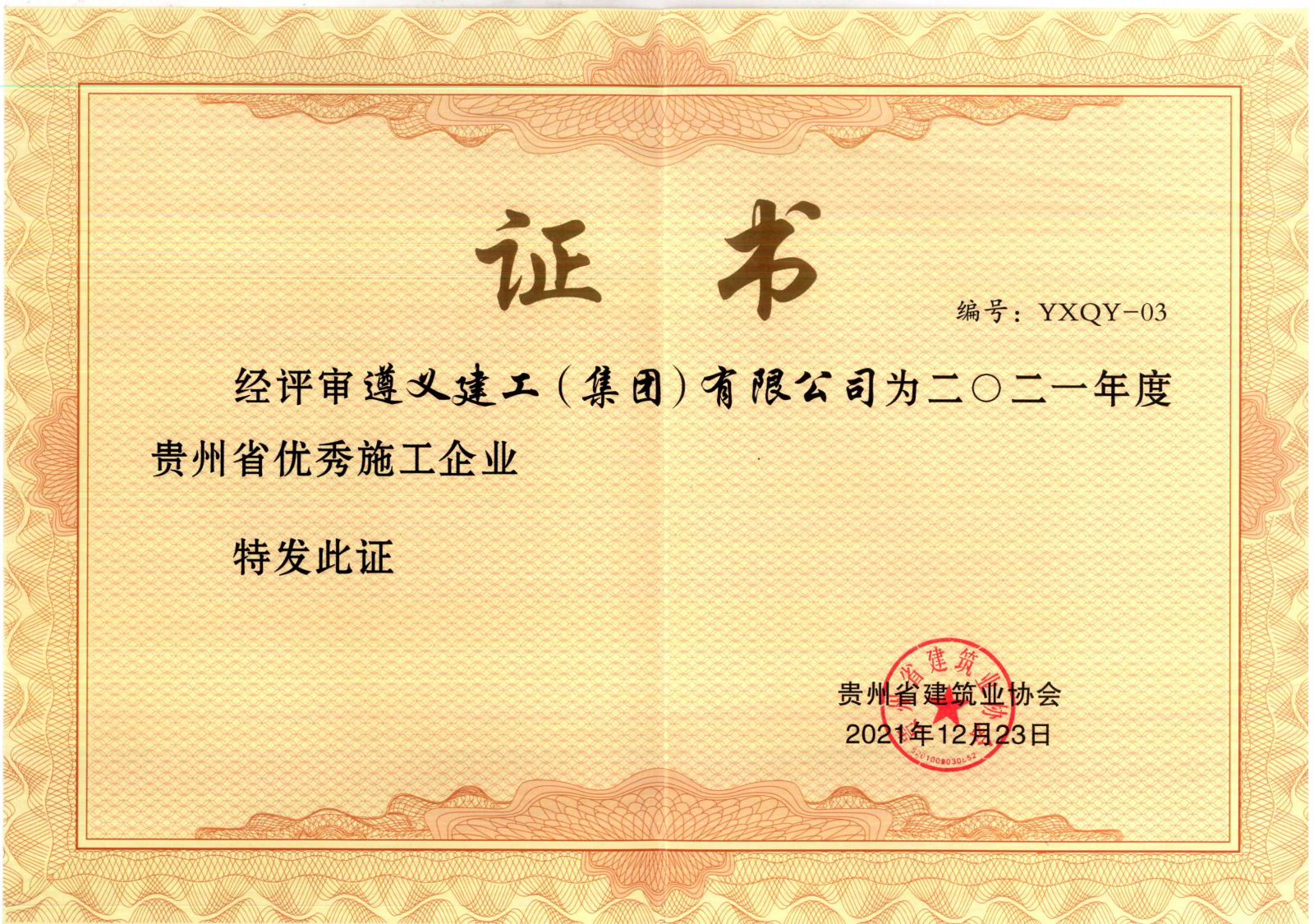 2021年10月,貴州省建筑業(yè)協(xié)會開展“2021年度貴州省優(yōu)秀施工企業(yè)”;評選活動,對省內(nèi)施工企業(yè)的經(jīng)濟(jì)效益、社會效益、經(jīng)營管理等各方面進(jìn)行綜合考量,于2021年12月23日,公布了評選結(jié)果。